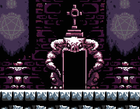 The castle is infested by spell-wielding cultists who have ability to teleport, and includes the most challenging platforming yet. Unlike the prior dungeon, this one does not contain any keys, so the only gatekeeping mechanic present is the dungeon's skill.